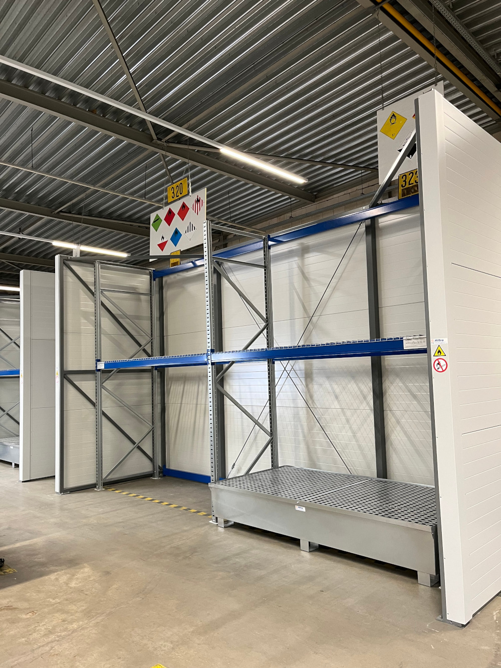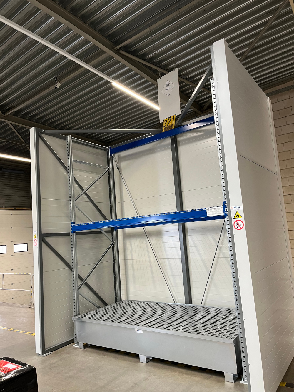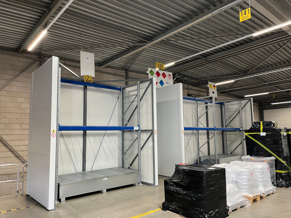 The temporary storage (transshipment/crossdocking) of unopened ADR-approved packaging is allowed according to the PGS 15 in a so-called Hiltra® Horsebox™. This specifically involves loads containing hazardous materials that are part of the logistics chain. The side walls and rear wall of the Hiltra® Horse Box™ must have a fire resistance of 60 minutes based on a fire from outside to inside. Goods must be placed at least 50 cm from the open front and to a maximum height of 50 cm below the top of the side walls and back wall. In a Hiltra® Horse Box™ a maximum of 2000 kg of flammable liquids may be present. It is not allowed to temporarily store substances of ADR classes 1, 2.3, 7, 5.2 (except LQ up to 1000 kg), 6.2 (except UN3291 and UN3373) and gas cylinders in a Hiltra® Horsebox™ . The storage of ADR substances of packing group I is also not permitted. For comprehensive regulations regarding the use of a Hiltra® Horsebox™ please refer to Chapter 5 of the PGS 15.