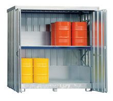 De Safecenter SCA modellen zijn bij uitstek geschikt voor de uitpandige opslag van gevaarlijke stoffen in drums en IBC's. Een basisstelling kan eenvoudig uitgebreid worden met één of meerdere aanbouwstellingen. Een praktische en gunstige oplossing om snel grote hoeveelheden op te slaan. Getoonde producten zijn toepasbaar binnen de PGS 15 regelgeving.